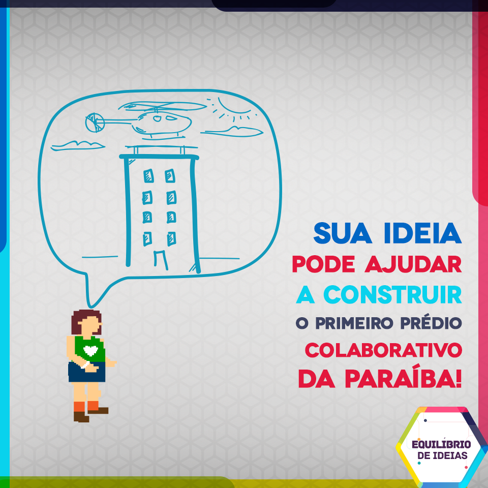 Inspirada nesse modelo de iniciativa, a construtora paraibana Equilíbrio lançou na terça-feira, 4 de fevereiro, o “Equilíbrio de Ideias” (www.equilibriodeideias.com.br). O projeto incentiva a colaboração do público para construir um condomínio clube em Manaíra, pedindo aos usuários de internet que digam o que sempre sonharam ter em um empreendimento, levando em consideração quesitos de lazer, acessibilidade, tecnologia, serviços, segurança e sustentabilidade. As ideias devem ser compartilhadas no site da ação, ou através da aba do projeto disponível na fan page da marca no Facebook, onde serão analisadas por um júri composto por profissionais da construção civil. Esta equipe vai observar critérios de inventividade, funcionalidade e viabilidade técnica para decidir quais propostas vão ser colocadas em prática.