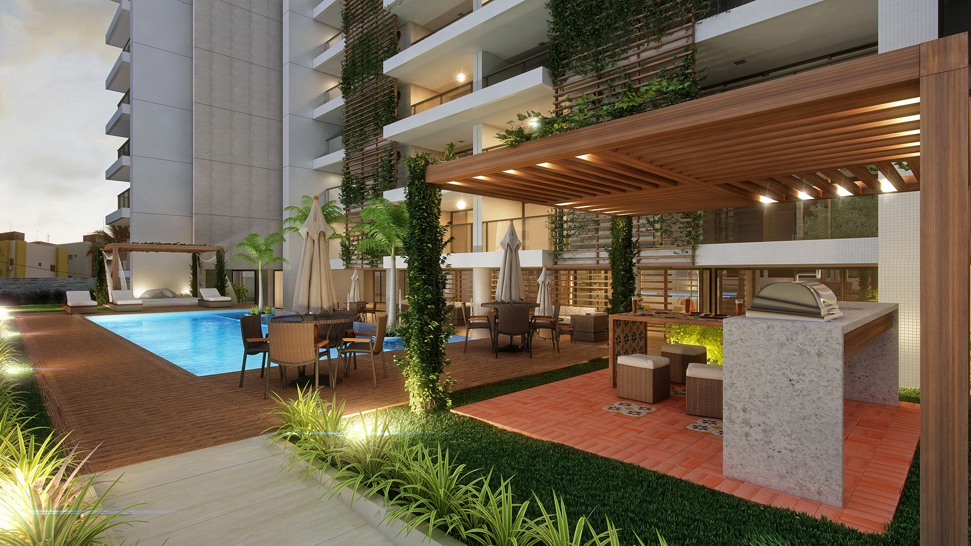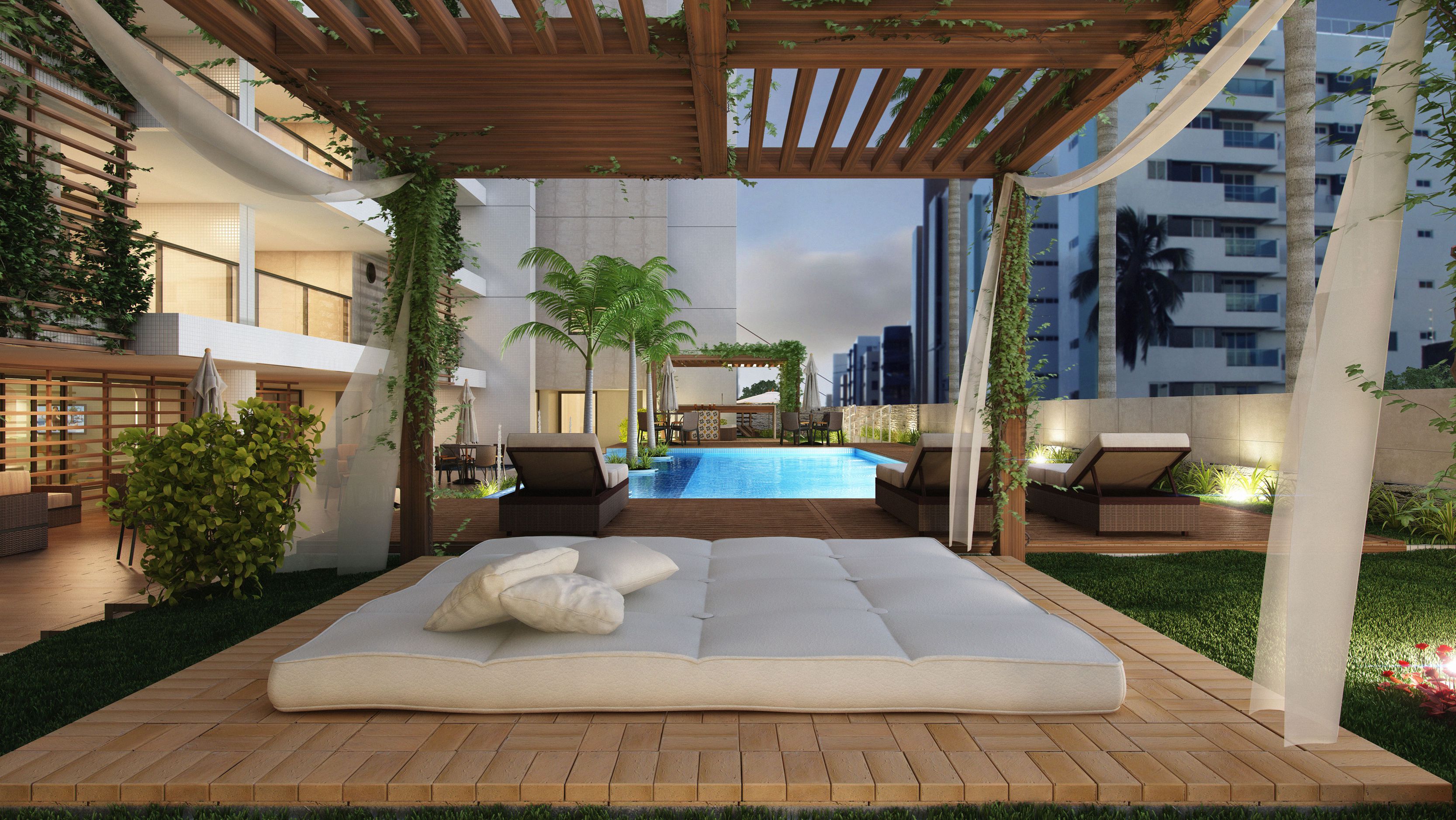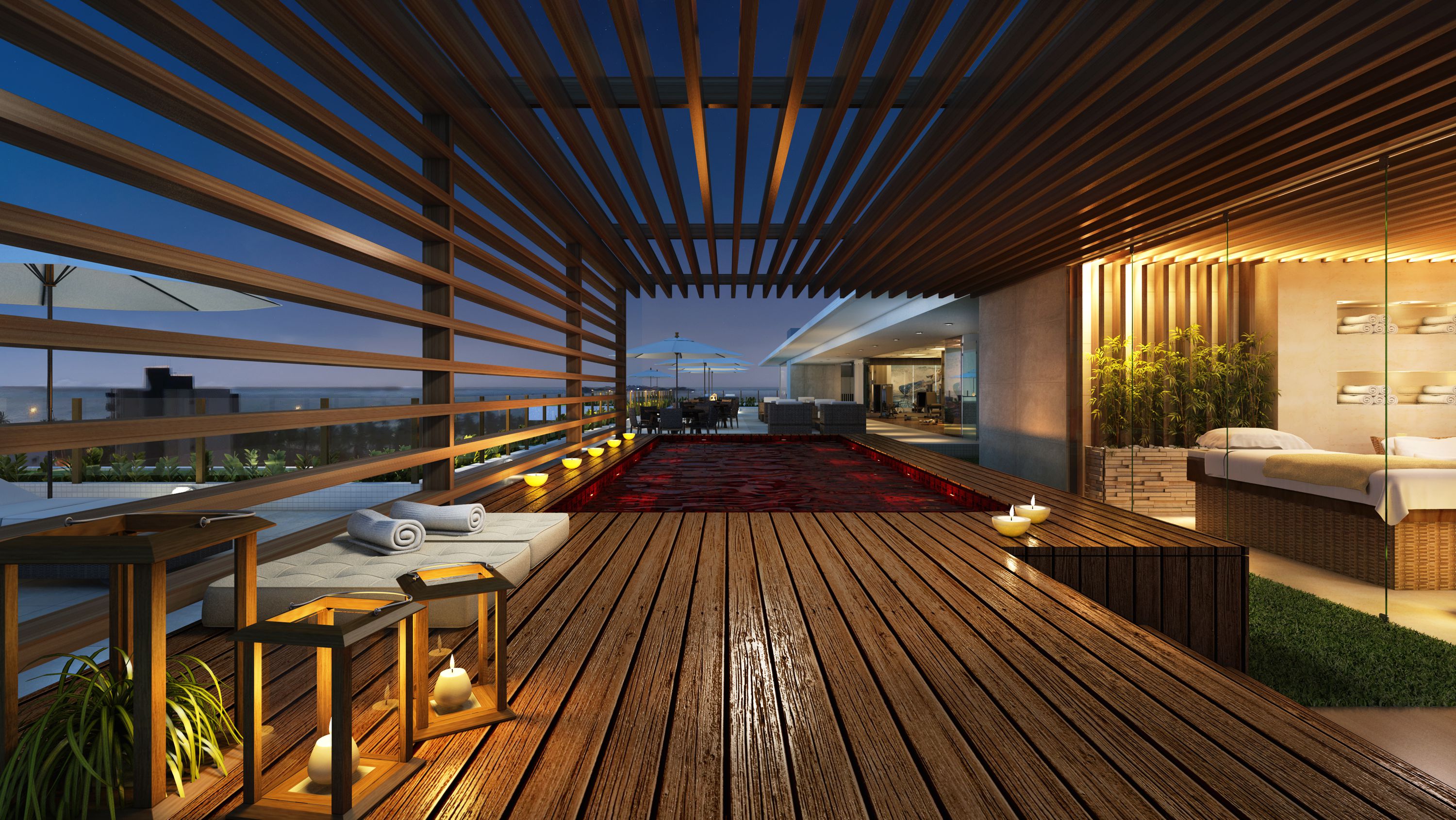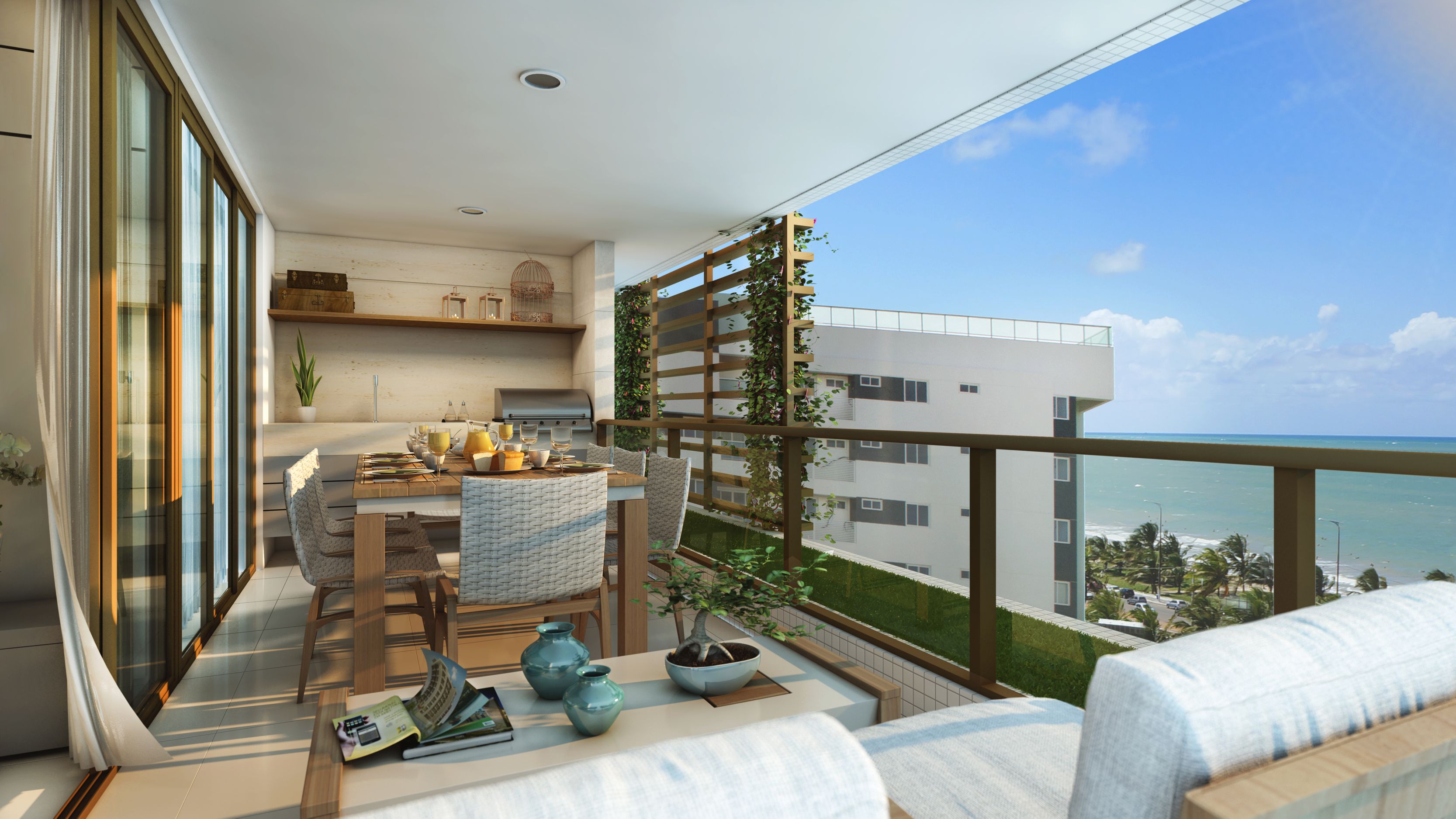 Localizado em Intermares, o Atlântica Beach Residences inspira saúde, bem estar e lazer. E foi com base neste conceito que nasceu o projeto de interiores e ambientação deste empreendimento. O interno e o externo estão totalmente integrados, trazendo além dos jardins, piscinas e espelhos d’água, o frescor da paisagem de Intermares para dentro dos ambientes. Buscando o conforto e a funcionalidade, foram desenvolvidos espaços pioneiros, como o Snooker bar, Fun Place e Outdoor Spa, que convidam todos os públicos a desfrutar de uma vida mais divertida, leve e saudável. A configuração do masterplan naturalmente promove o convívio social e o projeto de interiores o complementa, delineando ambientes despojados e joviais, sem perder a elegância e requinte que um empreendimento deste porte merece.